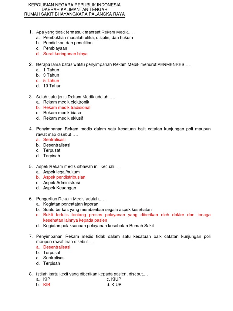 Soal Pemantapan Try Out Uji Kompetensi Untuk Piksi Ganesha A Memberikan Berkas Rekam Medis Yang